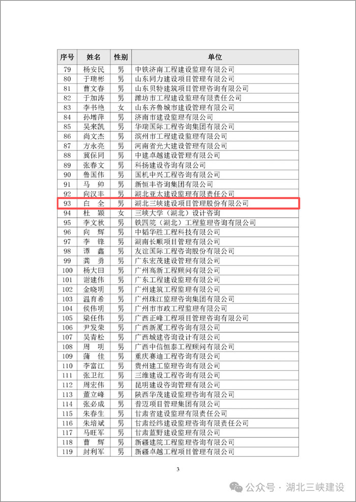 热烈祝贺我公司副总经理白全(总监理工程师),于2025年12月11 日获评中国建设监理协会首批总监理工程师执业能力与信用评价3A结果,实至名归,这一荣誉是对其专业能力与行业信用的高度肯定!